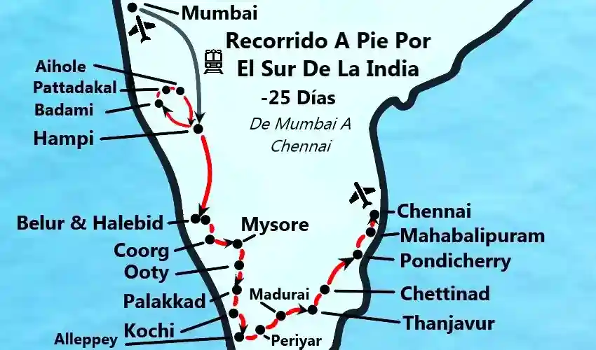 - Guía local privado de habla Inglesa durante todo el Viaje a Pie por el Sur de India de 25 días